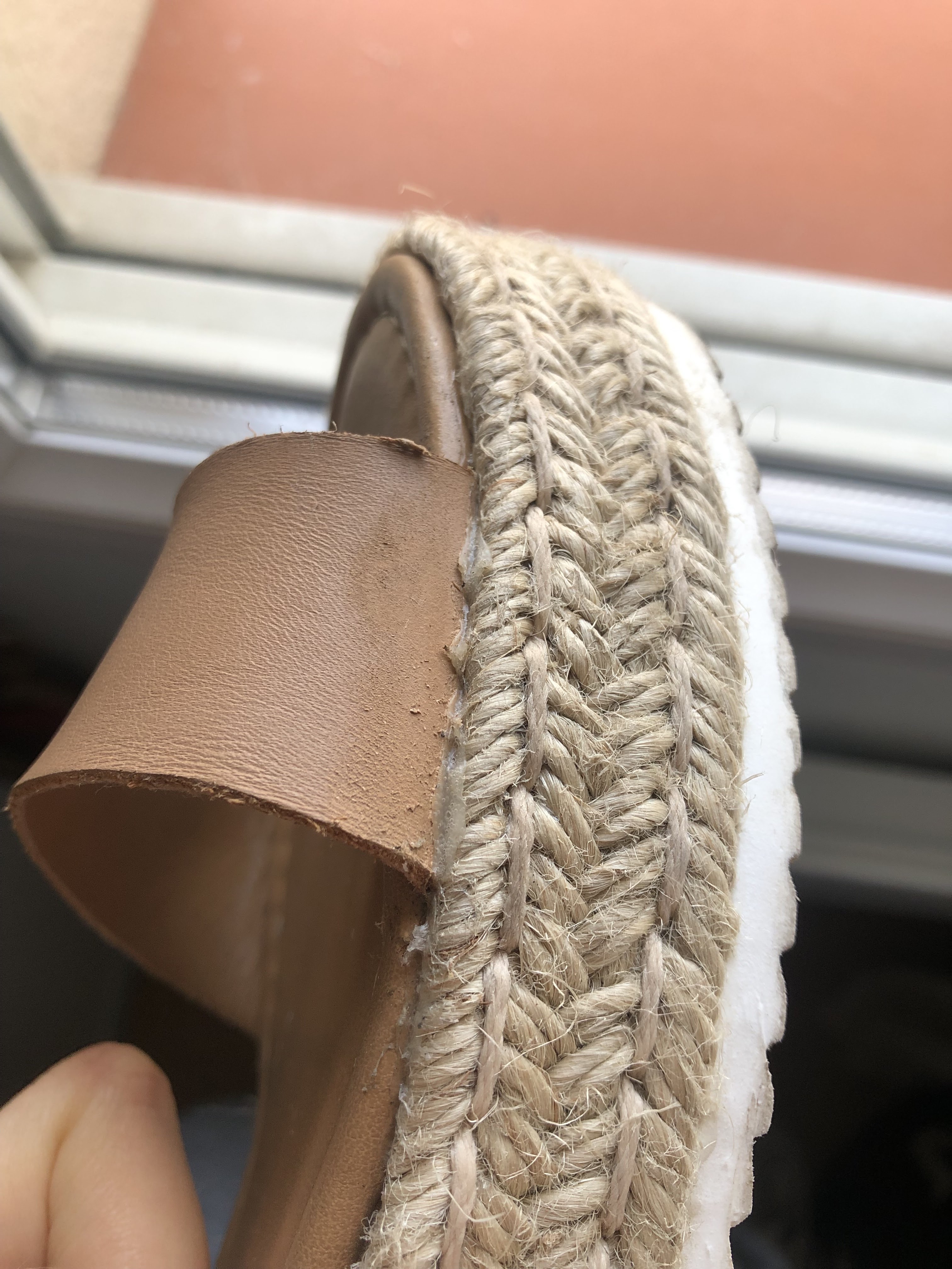 Posté le 13/07/2023 à 08:21"Payer pour avoir un travail si grossier et le cuir abîmé… J’aurais préféré recoller le côté de ma sandale toute seule. Je suis très déçue surtout quand on ose me dire que la différence de couleur du cuir c’est parce que « les chaussures sont sales » alors qu’on voit clairement que le cuir a été abîmé"